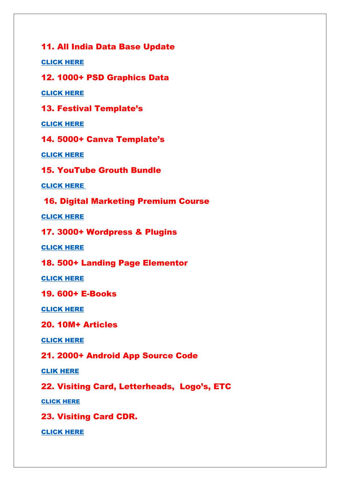 इस संग्रह में आपको 100+ प्रीमियम कोर्सेस मिलेंगे, जिनसे आप नए डिजिटल स्किल्स सीख सकते हैं। चाहे आप ट्रेडिंग, डिज़ाइनिंग, या डिजिटल मार्केटिंग में रुचि रखते हों, ये कोर्सेस आपकी सिखाई को एक कदम और बढ़ा सकते हैं। -