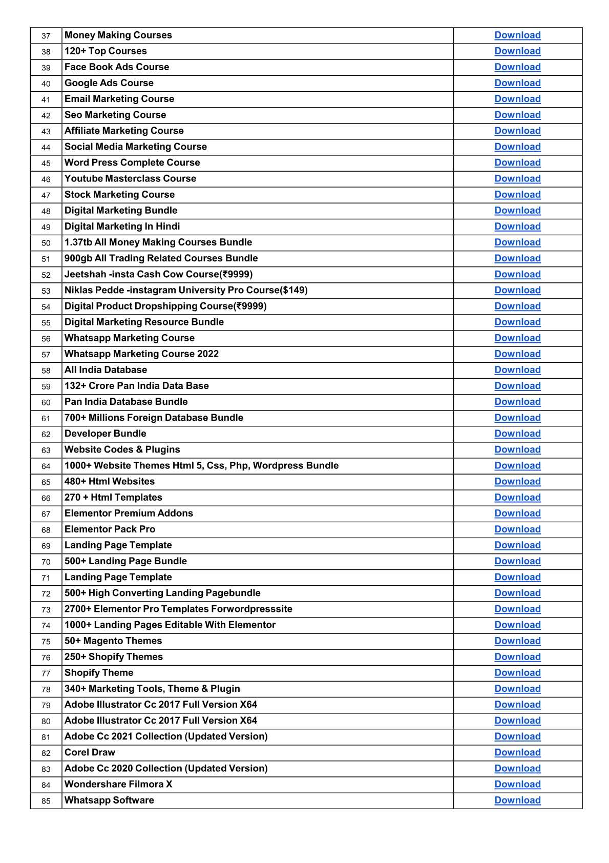 AI और ChatGPT के लिए इसमें हजारों prompts का bundle दिया गया है। 30000 plus से लेकर 100000 plus prompts तक मिलते हैं। यह content writing blogging marketing idea generation और productivity बढ़ाने में बहुत मदद करता है।